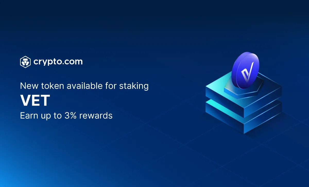 VeChain (VET) is now available for on-chain Staking in the Crypto.com App, in addition to the Cronos (CRO), Ethereum (ETH), Solana (SOL), Polkadot (DOT) blockchains and more.