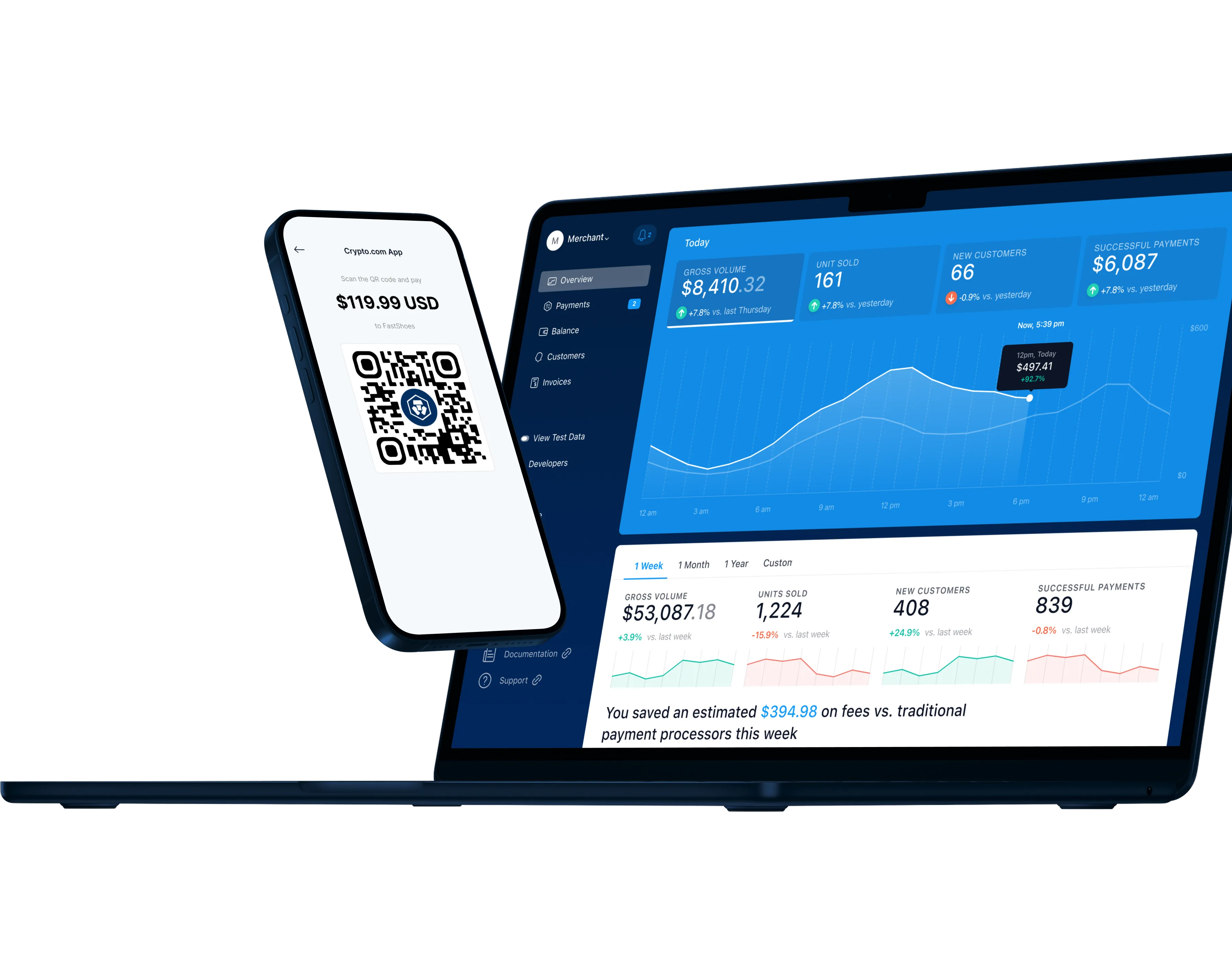 Accept in-store crypto payments via our dedicated Crypto.com merchant app. No POS integration is needed.