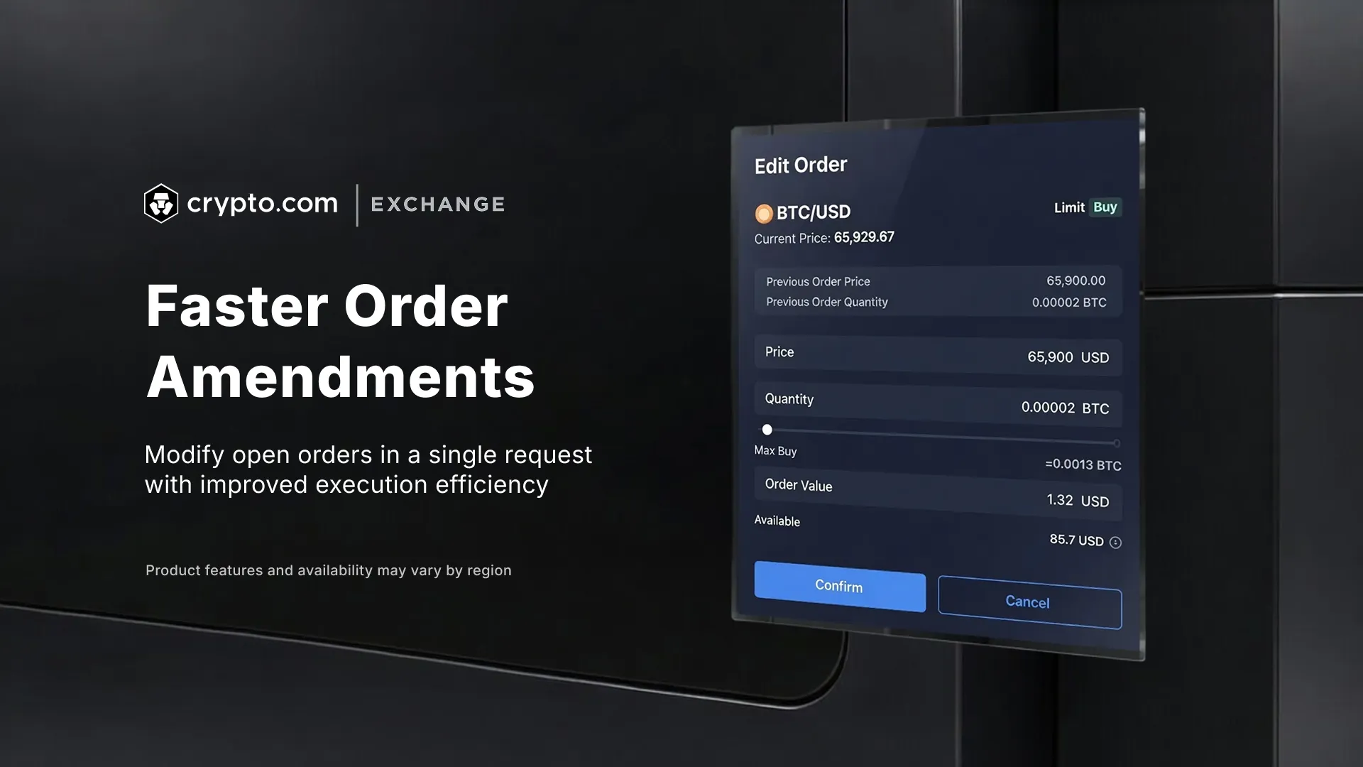 Crypto.com Exchange now supports order amendments, improving execution speed and efficiency for active traders.