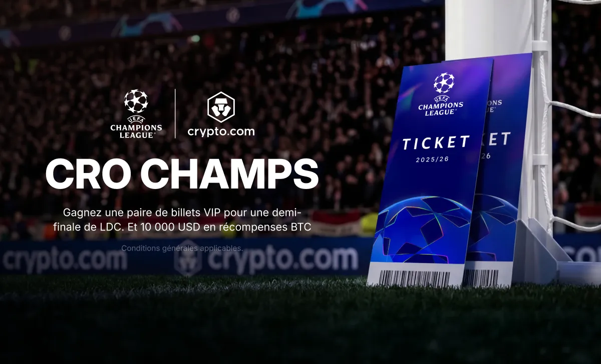 D'ici le 8 avril, nous récompensons les traders les plus actifs et les plus ambitieux. Les 500 meilleurs traders de CRO gagneront des récompenses en BTC, tandis que deux traders de l'EEE décrocheront des billets VIP pour une demi-finale de la Ligue des Champions de l'UEFA.