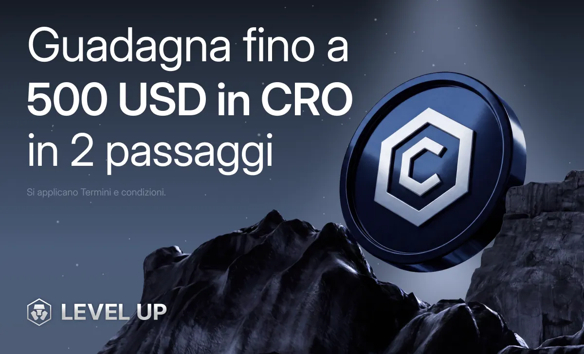 - Il presente contenuto non costituisce consulenza finanziaria. Nulla di quanto qui contenuto rappresenta una sollecitazione, raccomandazione, approvazione o offerta da parte di Crypto.com a investire, acquistare o vendere asset digitali. L’acquisto di criptovalute comporta un alto livello di rischio, incluso il rischio di perdere tutto o parte significativa dell’importo investito. Si consiglia di rivolgersi a un professionista prima di prendere decisioni finanziarie, di investimento o di trading.
