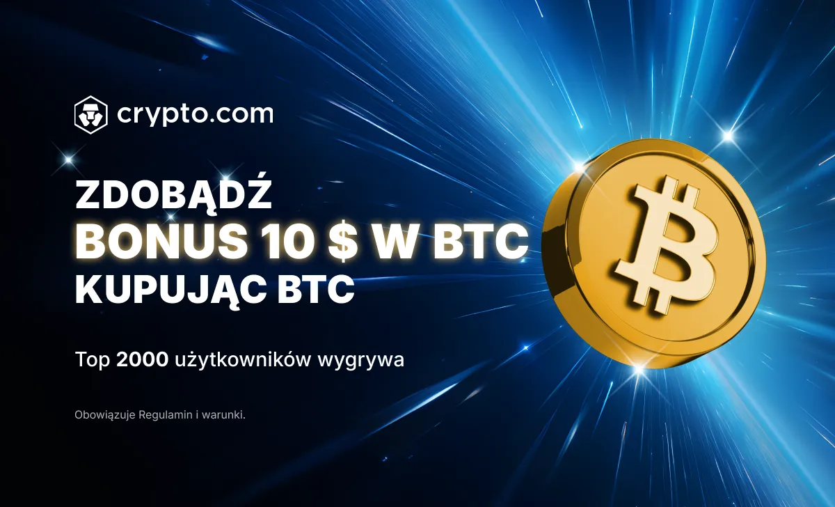 Teraz możesz zdobyć bonus BTC w ramach kampanii BTC w Crypto.com App. Kup co najmniej 50 USD w BTC i znajdź się wśród 2000 najlepszych użytkowników, aby zdobyć nagrodę w wysokości 10 USD w BTC.