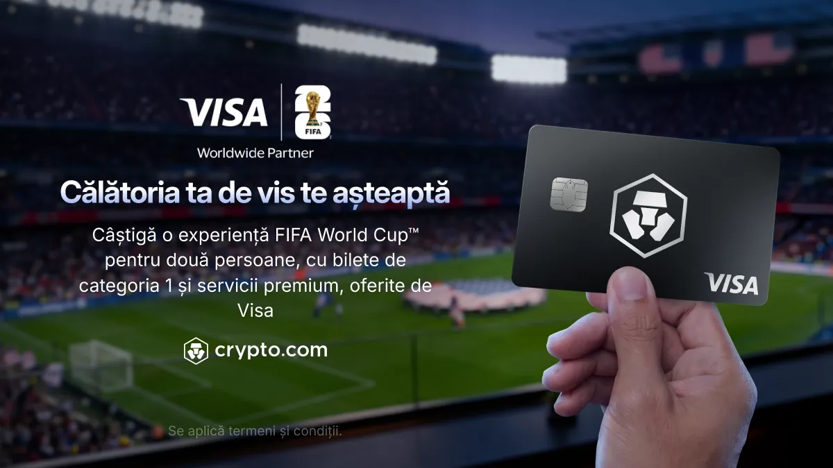 Até 10 de maio, tem a oportunidade de viver a experiência única da viagem à FIFA World Cup 2026™, graças à Visa. Só precisa de um(a) Crypto.com Visa Card.