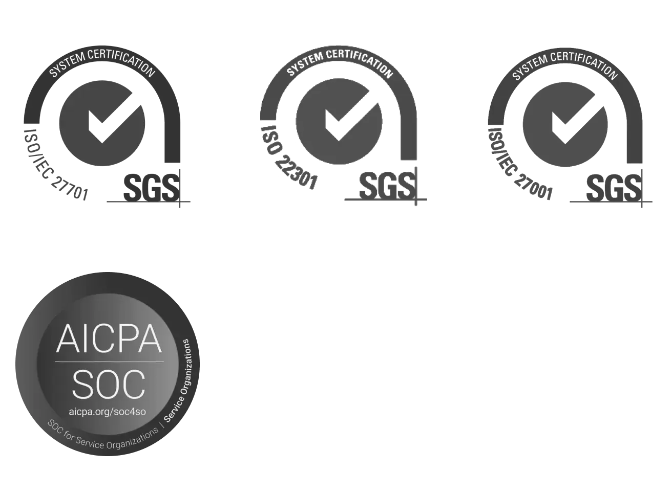 Our systems and processes undergo regular audits and are certified to meet international standards, including ISO/IEC 27001:2022, ISO/IEC 27701:2019, ISO 22301:2019, SOC 1 Type 2, and SOC 2 Type 2.